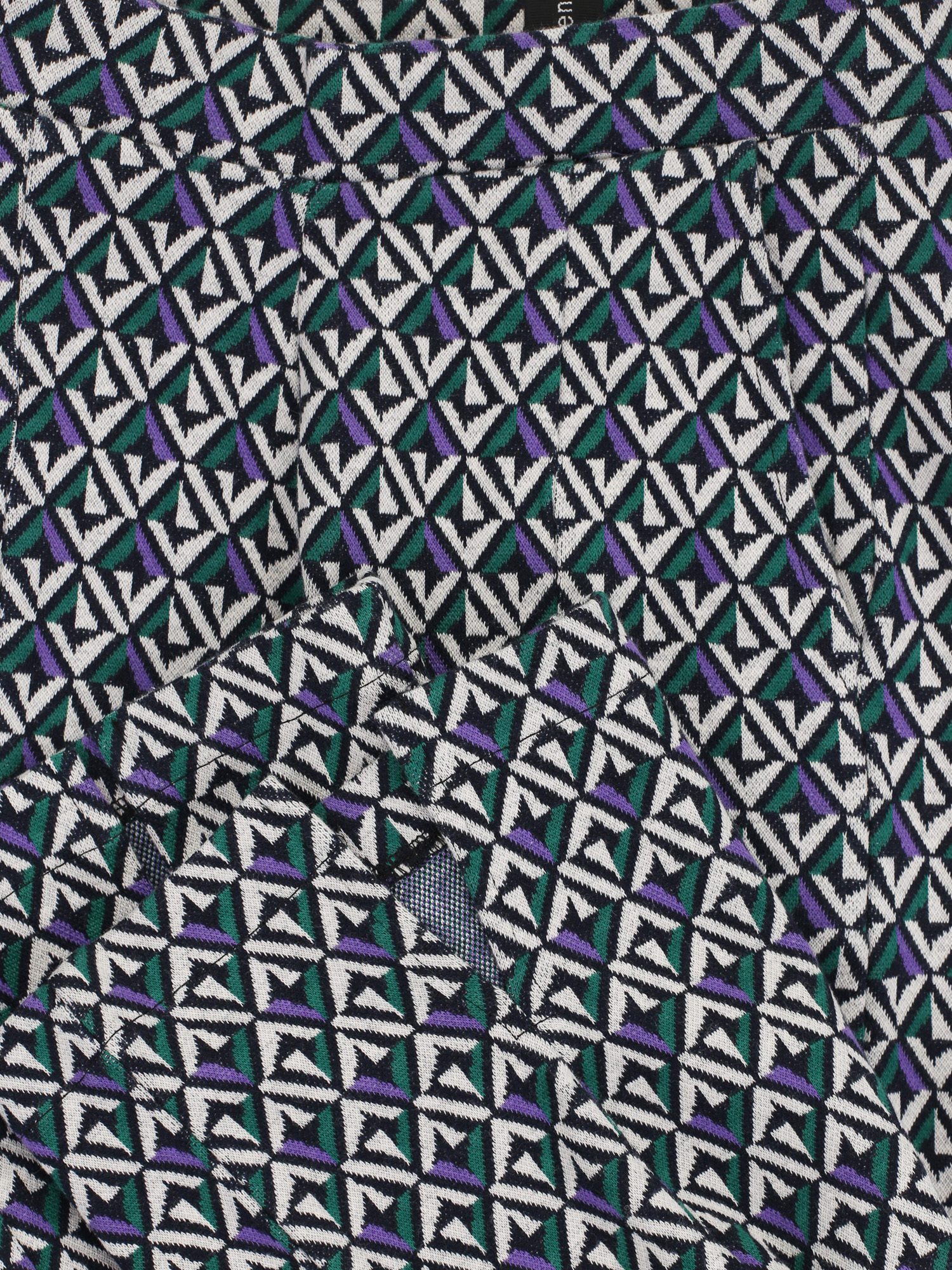 Artikelnummer: 0125mbr OverzichtBewerkte broek met een flair pijp in de kleurtjes paars en groen. Onderaan de pijp aan de voorkant een split. Ook leuk om te combineren met een bijpassende sweater.
