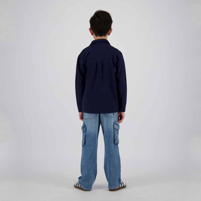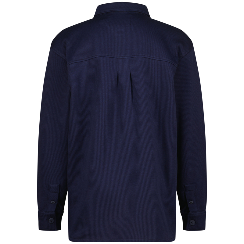 Stoere blouse in een fijne rekbare stof en daarin is een streepje ingeweven. Het is ook leuk om de blouse open te dragen en met een bijpassend shirt te combineren.
