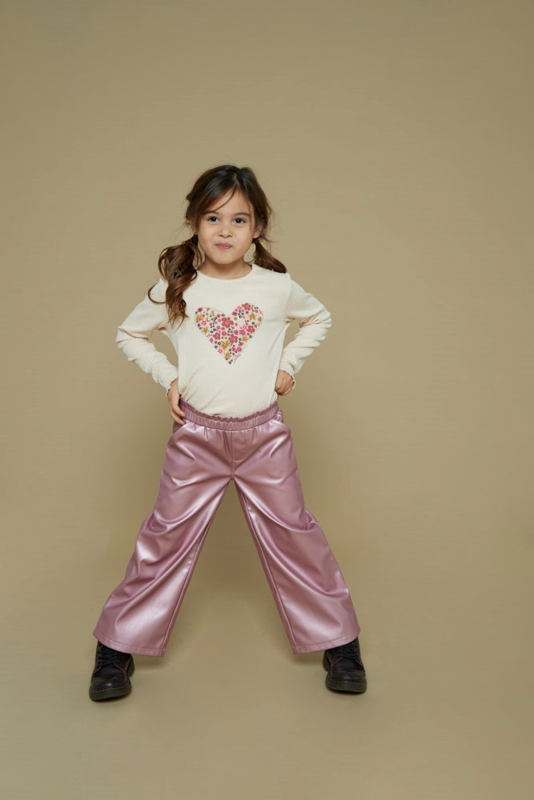 Super mooie broek met een rechte pijp in een rose metallic. Met in de boord elastiek en steekzakken.