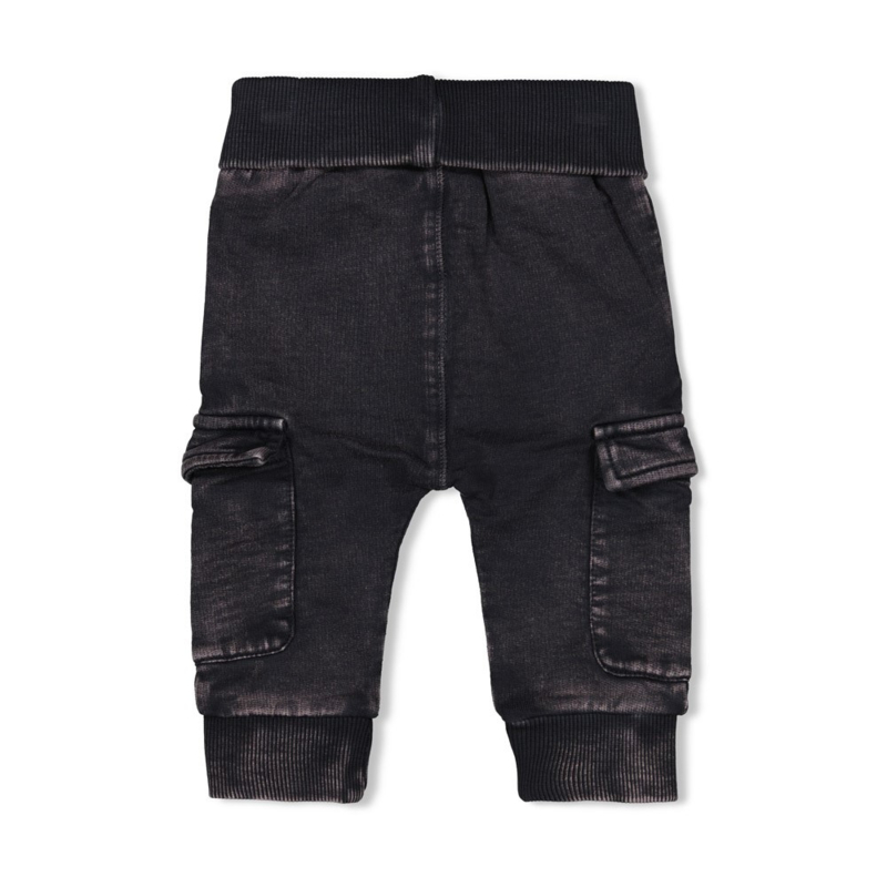Tricot broekje in een stoere wassing met onderaan zakjes en een omgeslagen boord.
