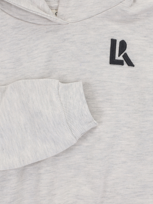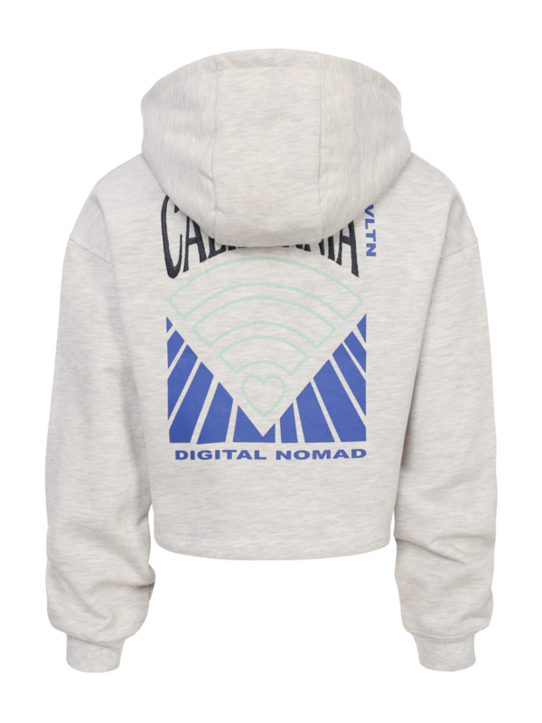 Ruimvallende sweater met capuchon in een kort model. Met op de achterkant een print.