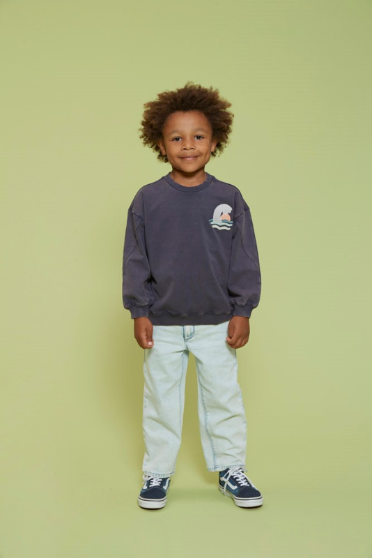 Stoere jeans in een lichte wassing met knoopsgaten elastiek. In een fijne stretch en het model heeft een rechte pijp.