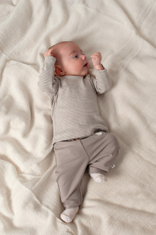 Tricot broekje met elastiek in de boord. In een warme kleur grijs.