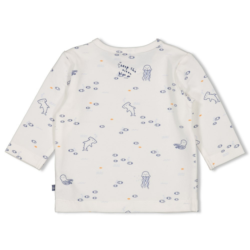 Tricot shirt met een print van visjes met op de schouder drukknoopjes.