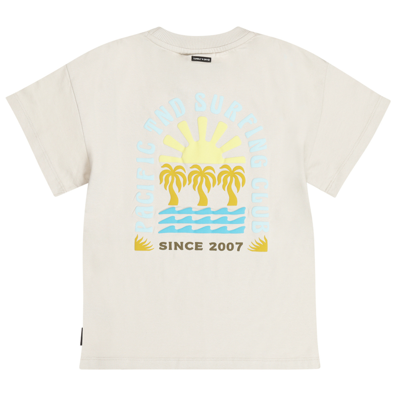 Artikelnummer: 0024jts OverzichtRuimvallend shirt in een fijne tricot met op de achterkant een gekleurde print. In een lichtgrijze kitkleur.