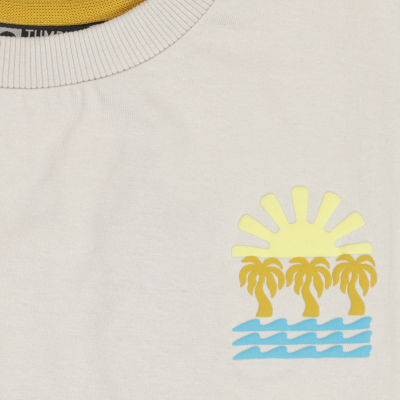 Ruimvallend shirt in een fijne tricot met op de achterkant een gekleurde print. In een lichtgrijze kitkleur.