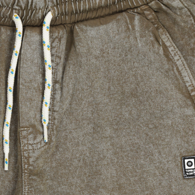 Tricot olijfgroene korte broek met in de boord een koord om het aan te halen . Is ook leuk om te combineren met een bijpassend shirt.