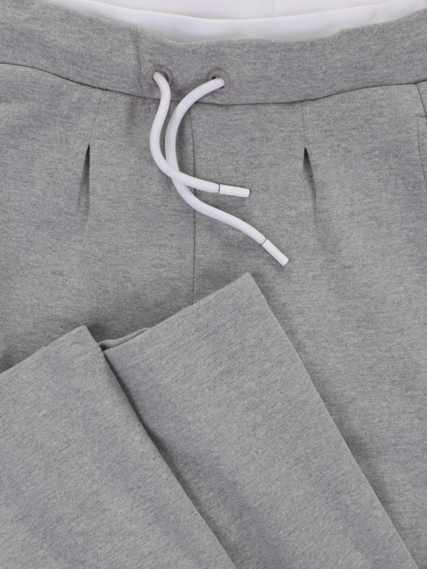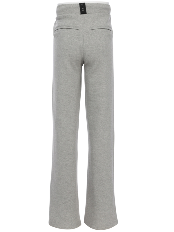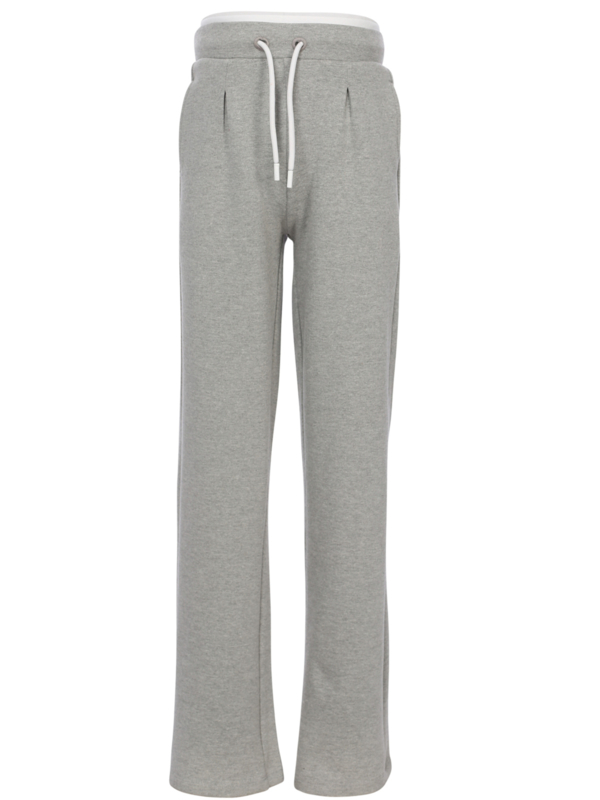 Ruimvallende broek met een rechte pijp in een soepel vallende tricot. Aan de bovenkant een witte boord en een koord om het aan te halen.