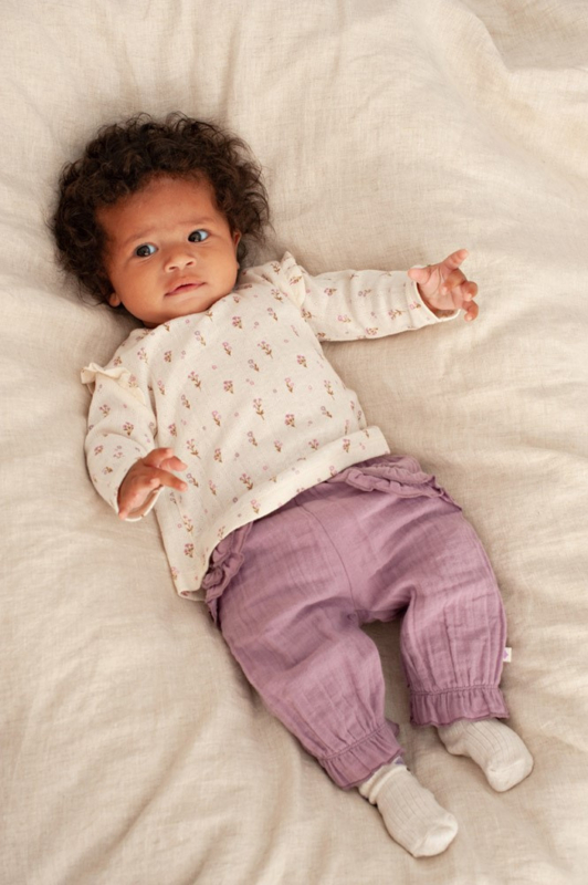 Lekker voorjaars shirt in vrolijke kleurtjes. Met op de schouder een ruche en drukknoopjes.