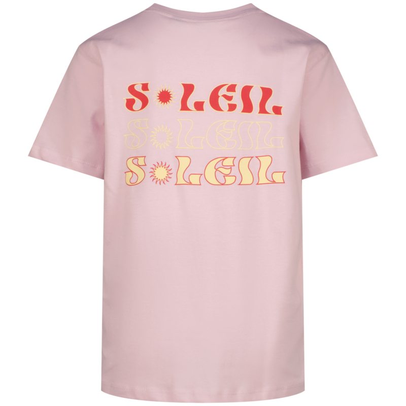 Ruimvallend shirt in een zacht kleurtje roze met op de achterkant een print en is ook te verkrijgen in het zwart.