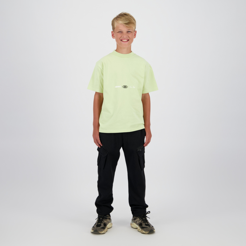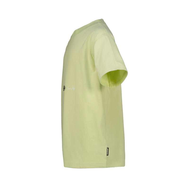 Ruimvallend shirt in een fris kleurtje limegroen met op de achterkant een print. In een fijne tricot en is ook verkrijgbaar in het offwhite.