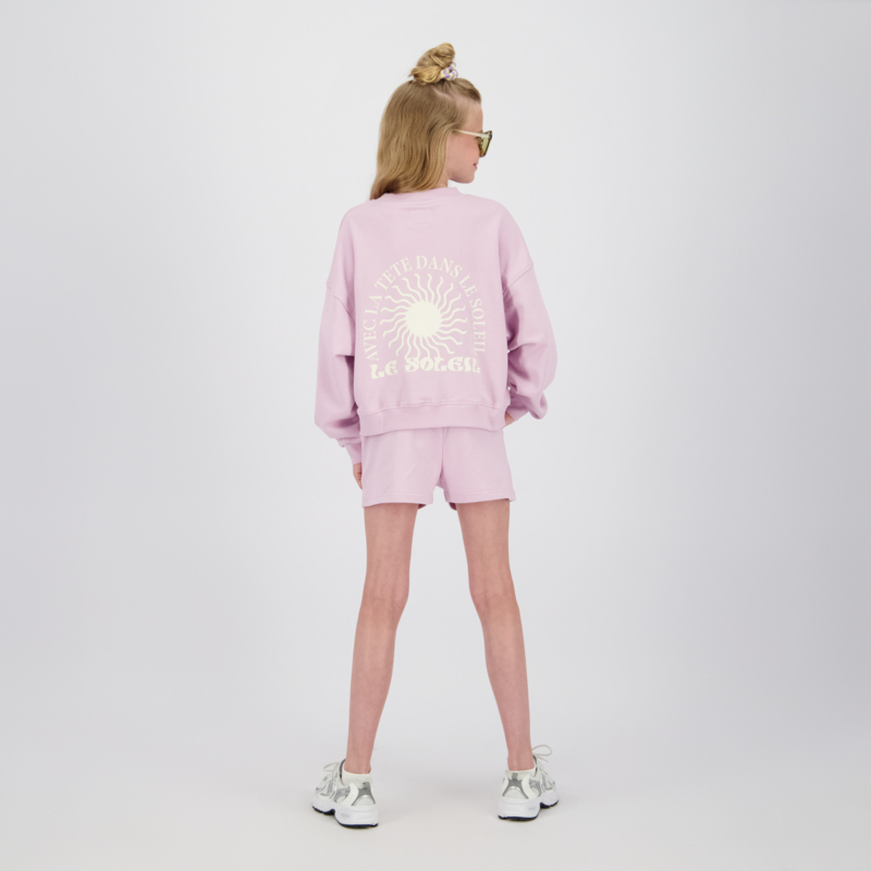 Artikelnummer: 0109mtr OverzichtKorte sweater in een zacht kleurtje roze. Met op de achterkant een print. In een fijne tricot en is eventueel te combineren met een bijpassend kort broekje.