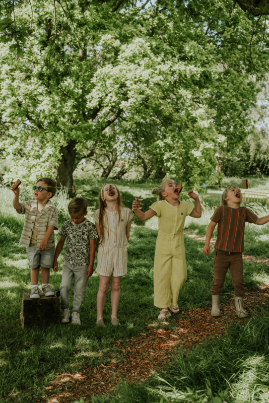 Joggingbroek in een warme kleur bruin met op de voorkant extra stukken onder de knie. Met in de boord een koord om het aan te halen. In ritsen op de zakken.