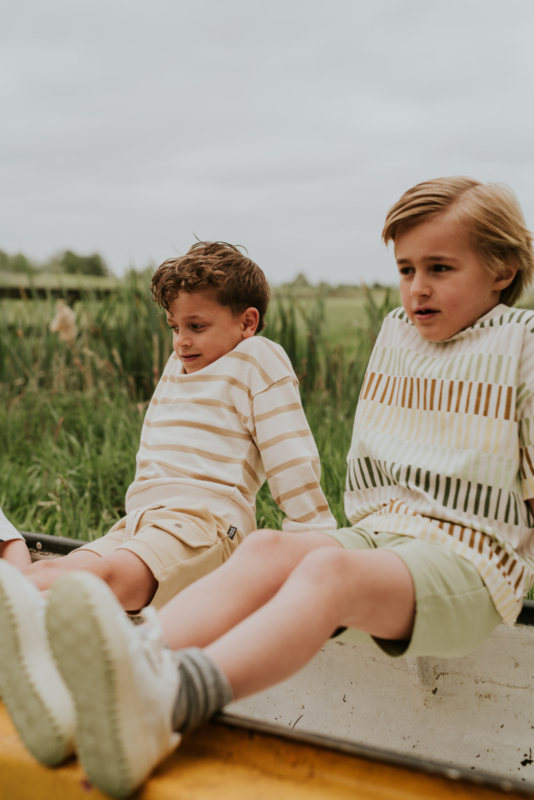 Tricot korte broek in een fris kleurtje groen met een koord in de boord om het aan te halen.