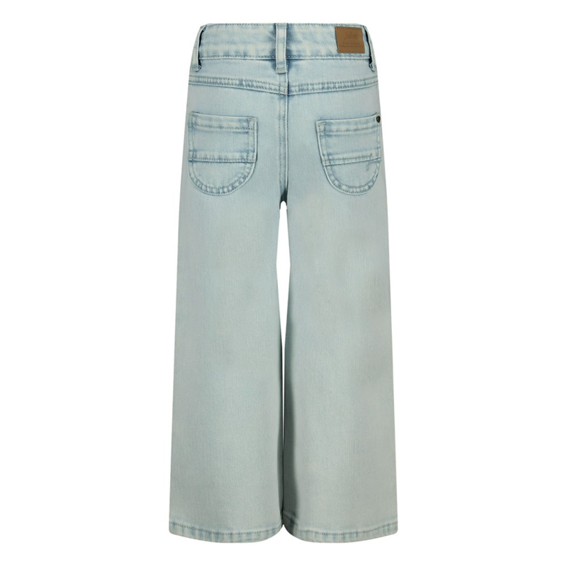 Stoere jeans in een lichte wassing met een rechte pijp. In een fijne stretch met aan de binnenkant knoopsgaten elastiek.