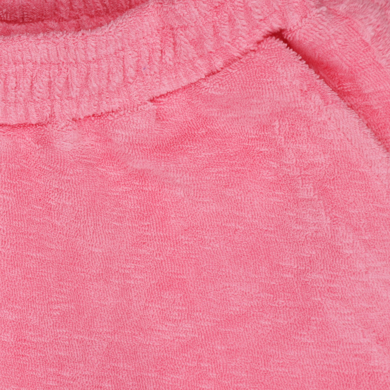 Roze korte broek in het fijne badstof en is ook verkrijgbaar in andere kleuren o.a. lila en groen. Met aan de zijkant steekzakken en elastiek in de boord.