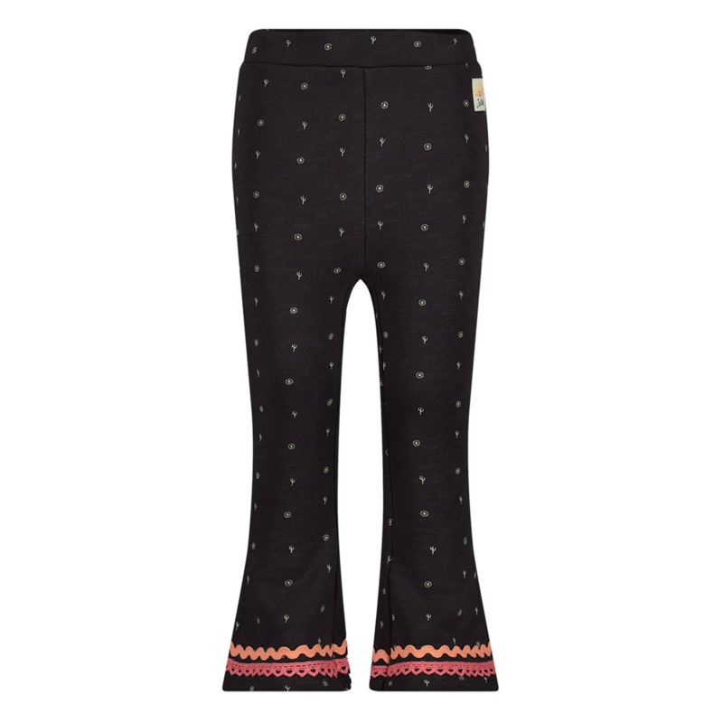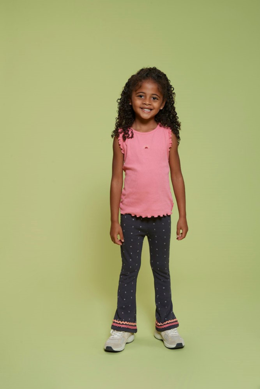 Tricot broekje met een flair pijp in het antraciet met aan de onderkant gekleurde bandjes.