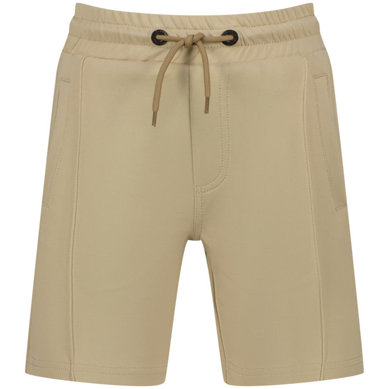 Sportieve korte broek in een warme zand kleur. Met in de boord een koord om het aan te halen.