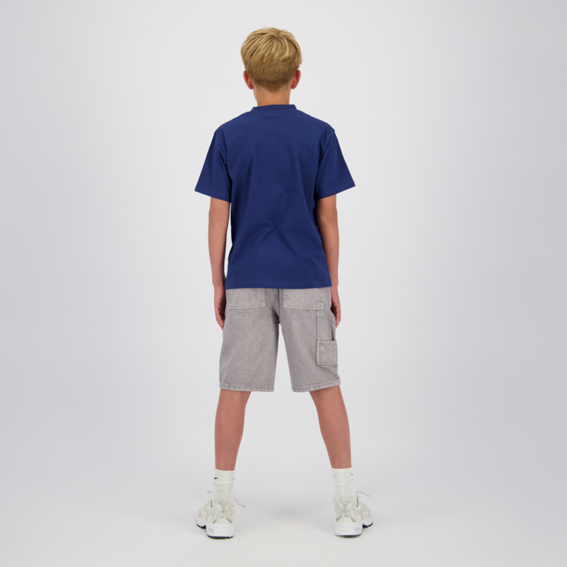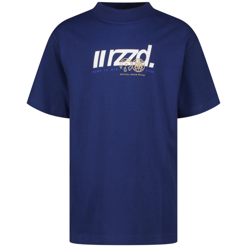 Ruimvallend shirt in het donkerblauw. Met op de voorkant een print. In een fijne tricot.