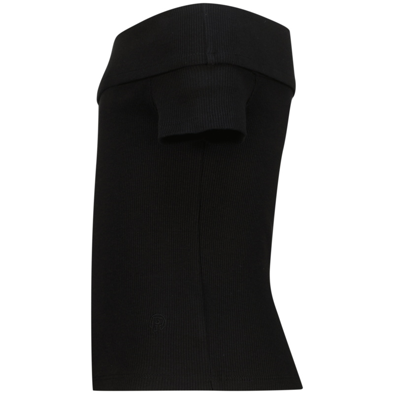 Aangesloten shirt met aan de bovenkant een omgeslagen boord. In een fijne rekbare katoen met een ingeweven streepje.