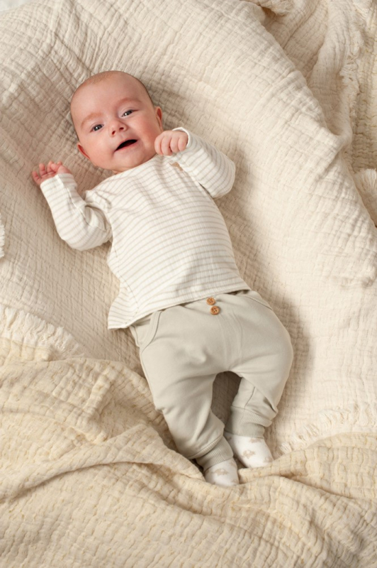 Tricot broekje in een zachte mint kleur. Met een omgelsagen boord.