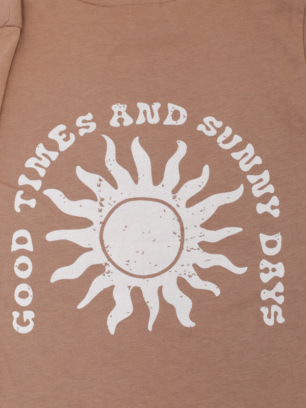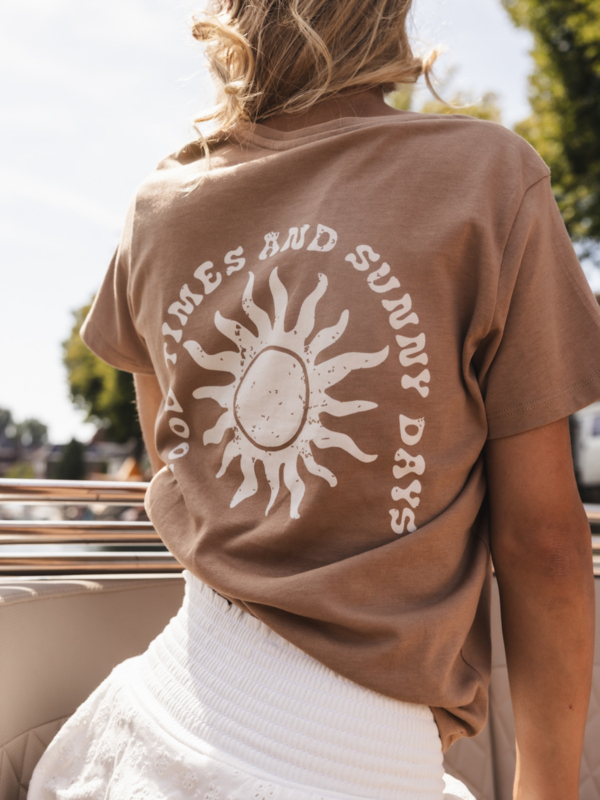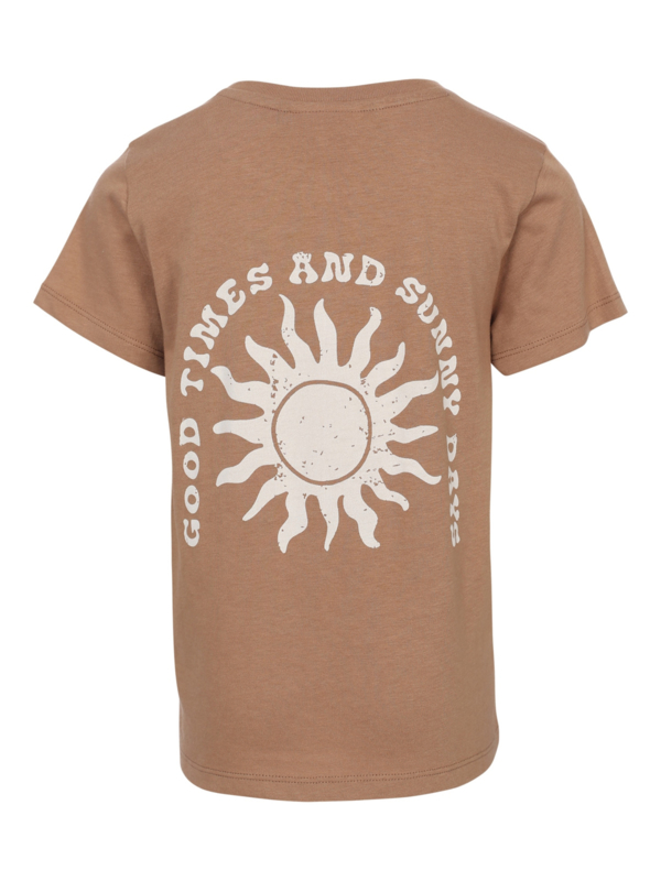 Trioct shirt in een warme zand kleur. Met op de achterkant een print.